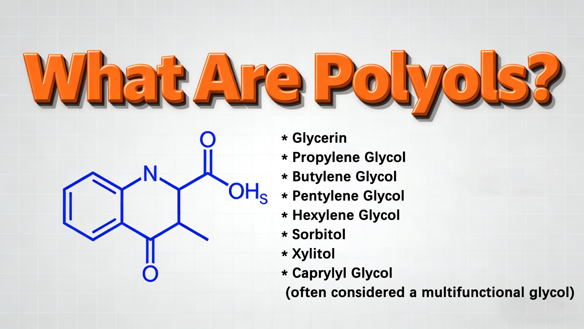 폴리올은 여러 개의 하이드록실(-OH)기를 포함하는 유기 화합물입니다. 폴리올은 수용성, 안전성, 그리고 다기능성 때문에 개인 위생용품 및 물티슈 액체 제형에 널리 사용됩니다.