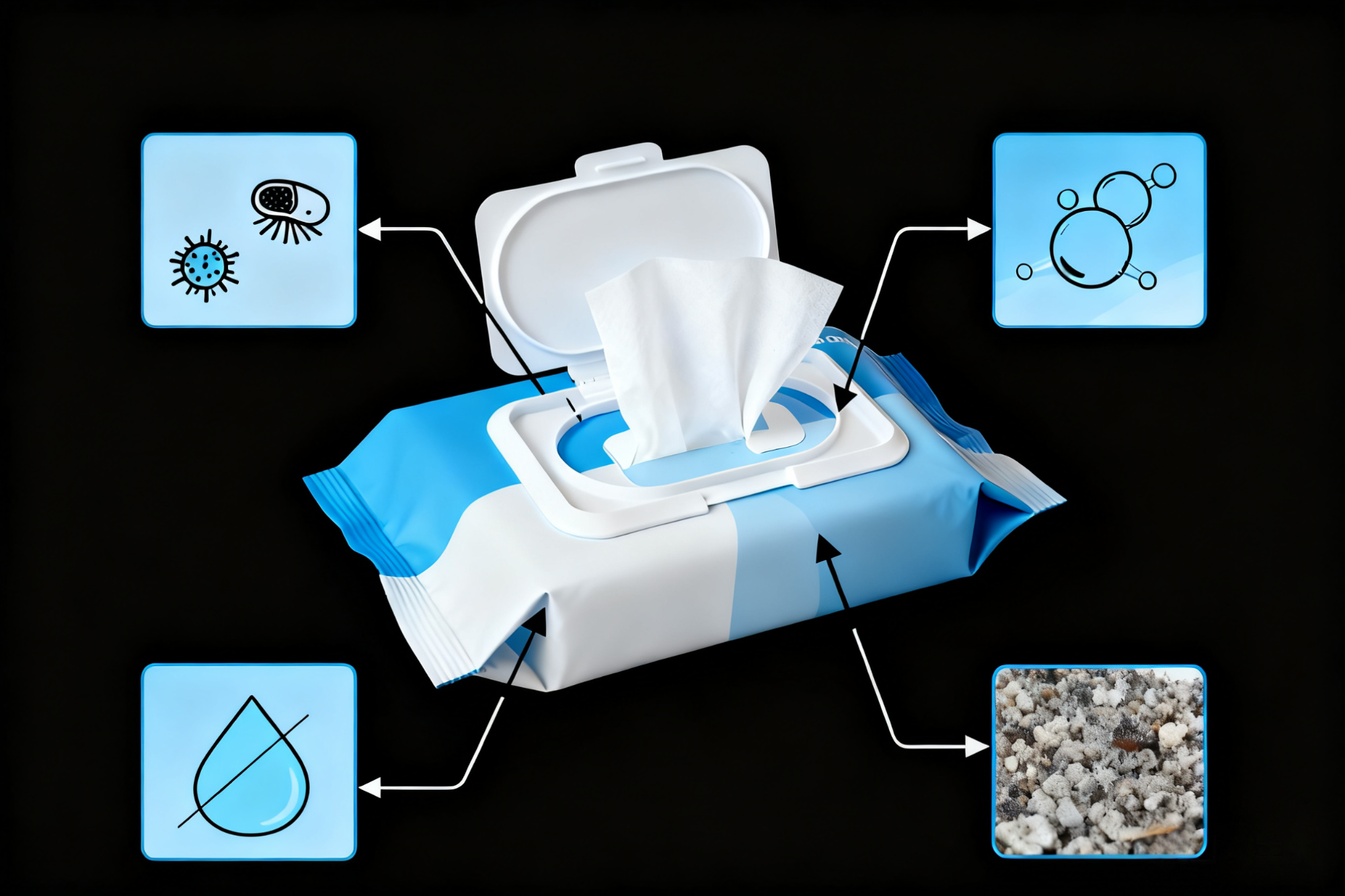 この記事では、実際の工場での経験に基づき、これらの問題を引き起こすよくある5つの原因を分析し、ウェットティッシュ製品の真髄とも言える液剤の配合に焦点を当てた専門家による解決策をご紹介します。