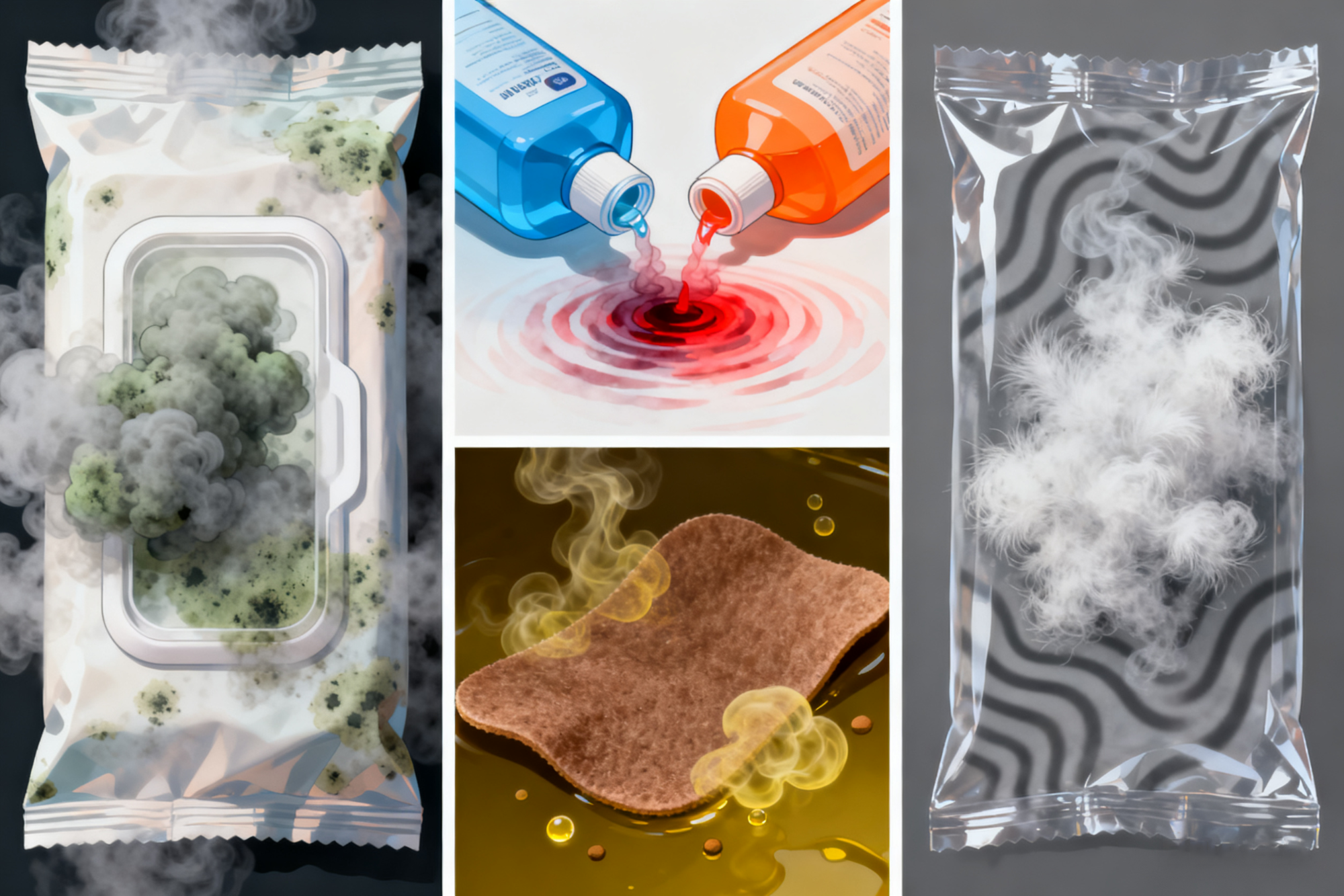 기억하세요: 변색은 단순히 외관상의 문제가 아니라 물티슈 액상 내부의 화학적 또는 미생물학적 불안정성을 나타냅니다.